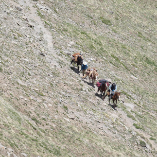 As usual, we had fenced off a pasture for the horses for the night and let them run around freely outside the fence with their bells so that we could hear them. As we put down our sleeping bags for the night and prepared our dinner of freeze-dried food. The horses didn't stay close as usual but moved further up the mountain. They didn't seem to like the grass here. We moved the fence to the area where they had been grazing and made it as big as possible. At last the horses were happy.