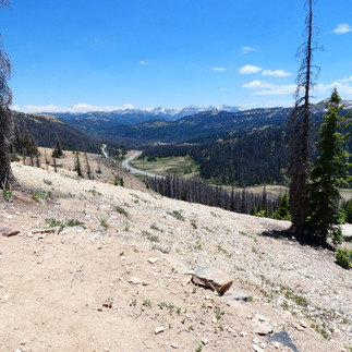 Again, Kristie, our personal hero from BCHM, has organized a trailer for us to take us to Wolf Creek Pass, where we say goodbye to Nancy and Kristie and mount our horses to lead them up the CDT trail at 1pm. The trail takes us right up to the tree line and there is very little snow. We hike along the trail and only have to go around a few snowfields. The landscape is breathtaking and we enjoy the solitude of the trail. At 4.30 a.m. we find a good place to camp in a large meadow with lovely grass for the horses.