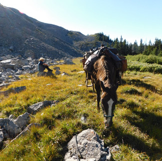 OK, enough backstory. It was a short drive from our camp at Syncline to the South Castle trailhead. We were unloaded, saddled and on the trail by 8AM. Easy riding on an old Forest Service Road and ATV trail down the river valley. The rest day had been good for the horses; they were fresh, stepping out and seemed happy to be back on the trail. We’d covered 23km, reaching the turnoff where we’d start climbing Font Mountain to reconnect with the GDT, so we stopped for lunch and an extended grazing break.