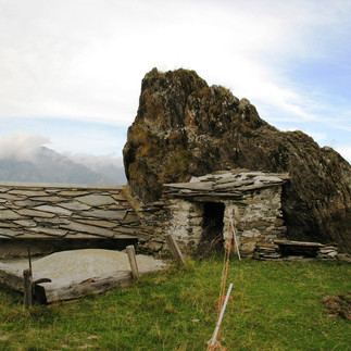 Heute machen wir eine Extremtour am Fusse des Monte Rosa. Wir sehen den Mond gerade noch untergehen, als wir in der Frühe die Pferde füttern. Wir führen die Pferde auf der Teerstrasse an Bergwerkstollen vorbei und sehen zu, wie der Himmel wieder zu zieht. Wir entscheiden, auf dem Rif Pastore Pause zu machen, und am nächsten Tag erst weiter zu gehen. Auf gut ausgebauten Wanderwegen führen wir die Pferde hinauf und ich gehe mich nach den Möglichkeiten erkundigen. Ein kleines Paradies eröffnet sich, eine fertig einge- zäunte Weide, ein wunderschön gelegenes Refugio und der Ausblick auf den Monte Rosa bieten sich an. Wir satteln ab, stellen die Pferde auf die Weide und verräumen unser Zeugs im Holzschuppen. Später essen wir Mittag und holen den Rest des Nachmittags all die Pausen nach, die wir unterwegs nicht gemacht haben. Nach dem Picknick mit Aussicht fängt es wieder an zu regnen und wir legen uns für ein Nickerchen hin. In 2 Tagen geht unsere Reise zu Ende. Wir werden knapp 700 km zurückgelegt haben, und über 30 Pässe mit 40000 Höhenmetern hochgeklettert und wieder abgestiegen sein. Die Pause tut uns allen gut.