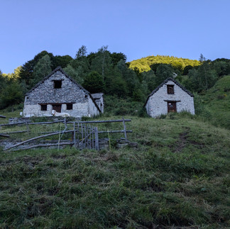 Bald erreichten wir St. Marie, wo wir in die Berge hinauf mussten, um ins nächste Tal hinüber zu wechseln in einem Bistro dort suchten wir nach Refugios, wo wir unterkommen könnten und fanden nur eines was geöffnet war. Also nichts wie los und den Berg hinauf. Denn wir mussten ankommen, bevor die um 1600 Uhr dicht machten. Wir erreichten das Rifugio, aber es war verschlossen und nur dank dem Zufall, dass 3 Wanderinnen in ein gegenüberliegendes Haus hinunter-kletterten, fanden wir das Refugio welches wir gesucht hatten. Die Wirtin versorgte uns mit Abendessen genügend Bier und Frühstück und zeigte uns, wo wir schlafen können. Bad und Küche und Dusche inkl. Die Pferde sind unterhalb der Terrasse eingezäunt und ich schlafe auf der Terrasse gleich daneben. Gegen 18 Uhr kommt ein Nachbar, der Besitzer des verschlossenen Refugios, und bringt eine Flasche Wein, den wir gemeinsam in der Küche verkosten. Er verabschiedet sich und hinterlässt nochmals eine Flasche Weisswein bei unserem Gepäck. Diese geniessen wir zum Abendbrot.